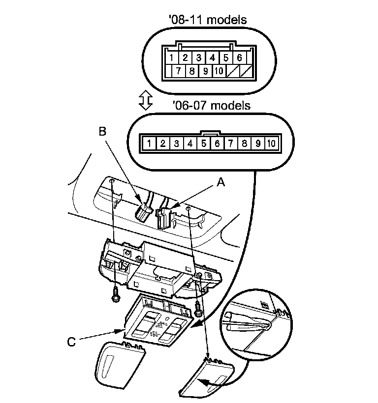 Remove the moonroof switch (C).