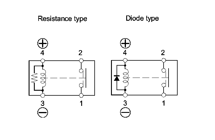 - There should be continuity between terminals No. 1 and No. 2 when battery power is connected to terminal No. 4, and body ground is connected to terminal No. 3.
