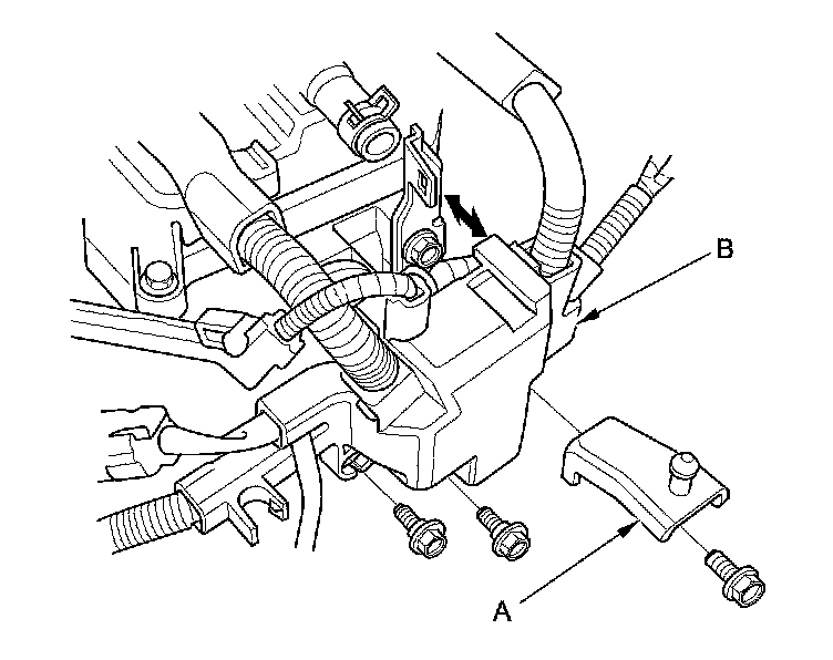 2. Remove the air cleaner bracket (A), then remove the harness holder (B) from the cylinder head.