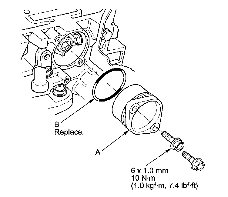 3. Install the camshaft thrust cover (A) with a new O-ring (B).