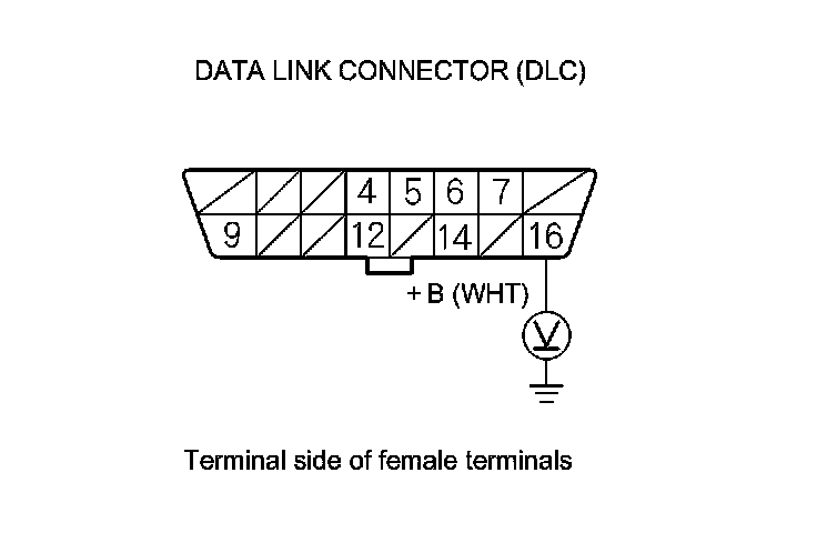 30. Measure the voltage between DLC terminals No. 4 and No. 16.