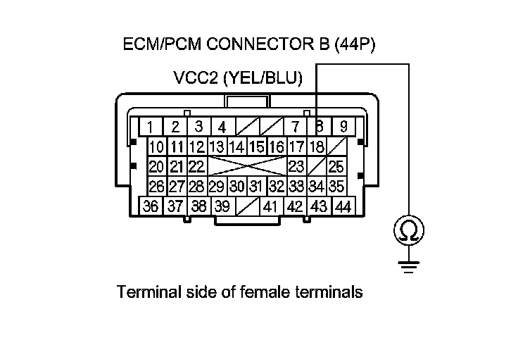 76. Check for continuity between ECM/PCM connector terminal B18 and body ground.