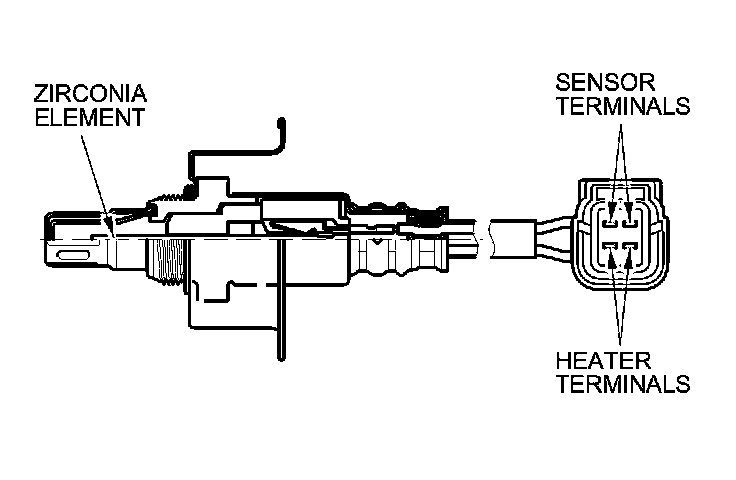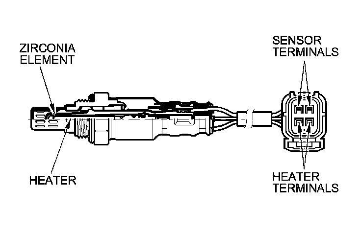The secondary HO2S detects the oxygen content in the exhaust gas downstream of the three way catalytic converter (TWC), and sends signals to the ECM/PCM. To stabilize its output, the sensor has an internal heater. The ECM/PCM compares the HO2S output with the A/F sensor output to determine catalyst efficiency. The secondary HO2S is on the TWC.