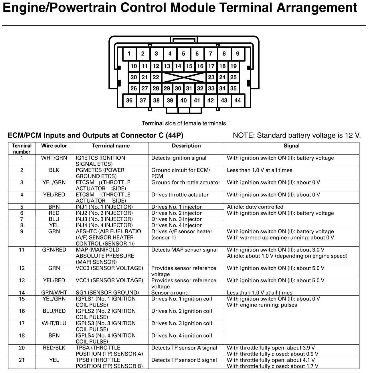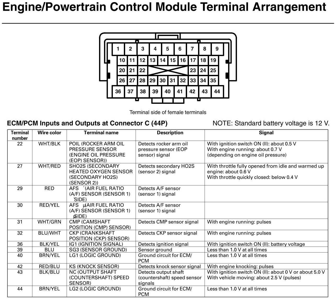 ECM/PCM Inputs And Outputs At Connector C (except Si, GX)