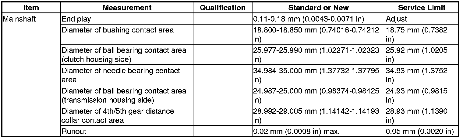 Mainshaft Specifications (5MT)
