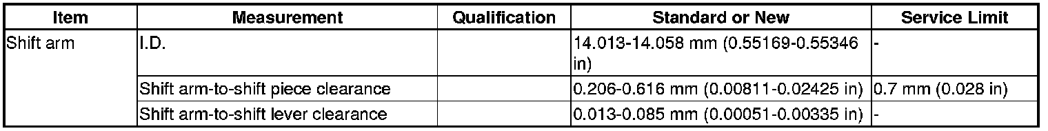 Shift Arm Specifications (5MT)