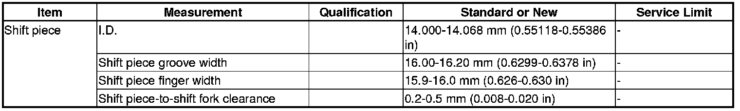 Shift Piece Specifications (5MT)