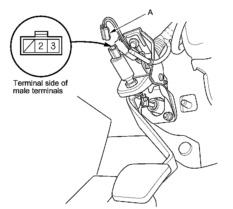 1. Disconnect the clutch pedal position switch 3P connector (A).