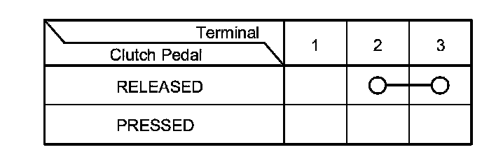 - If the continuity is not as specified, replace the clutch pedal position switch Clutch Pedal Position Switch Replacement, and adjust the pedal height Adjustments.