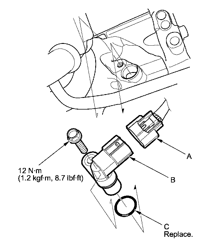 4. Install the parts in the reverse order of removal with a new O-ring (C).