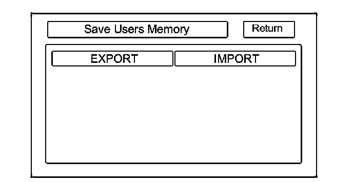 When replacing the audio-navigation unit, this function allows the dealer to transfer the customer's personal data to the new audio-navigation unit. The transferred information includes their Setup settings, and personal addresses. The dealer inserts a PC card to the audio-navigation unit, and then selects the Save Users Memory function. The two functions in this diagnostic screen are EXPORT and IMPORT. EXPORT saves the customer's data to the PC card, and IMPORT moves the PC card files to the new audio-navigation unit.