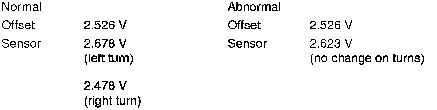 - A sensor output voltage LOWER than the Offset voltage indicates that the vehicle is turning to the right.
