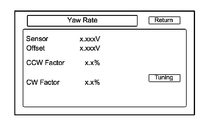 - The yaw rate offset, and sensor should both indicate about 2.500 V when the vehicle is stopped. If either reads zero, or 5.000 V, replace the audio-navigation unit Audio-Navigation Unit Removal/Installation (With Navigation).