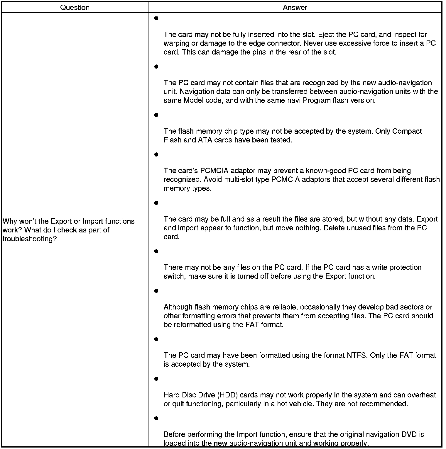NOTE: If the EXPORT button is grayed out, check the PC card's edge connector, and the pins inside the audio-navigation unit (with a flashlight) for damage.