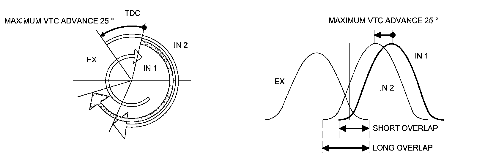 - If a malfunction occurs, the VTC system control is disabled and the valve timing is fixed at the fully retarded position.