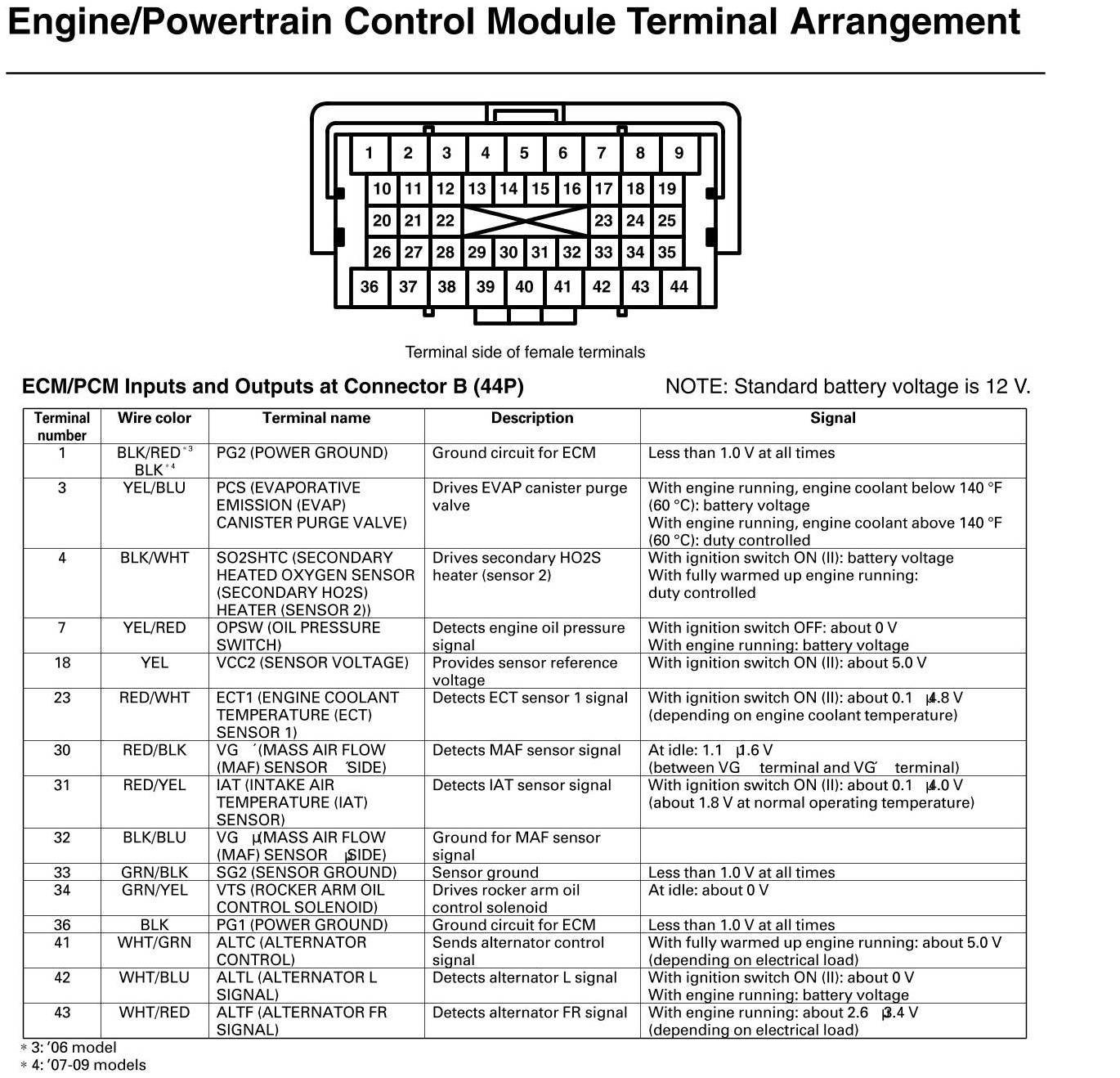 ECM/PCM Inputs And Outputs At Connector B (Si)