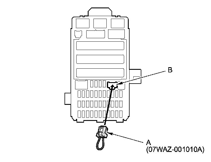 4. Connect the MPCS service connector (A) to the MICU service check connector (B) in the under-dash fuse/relay box.