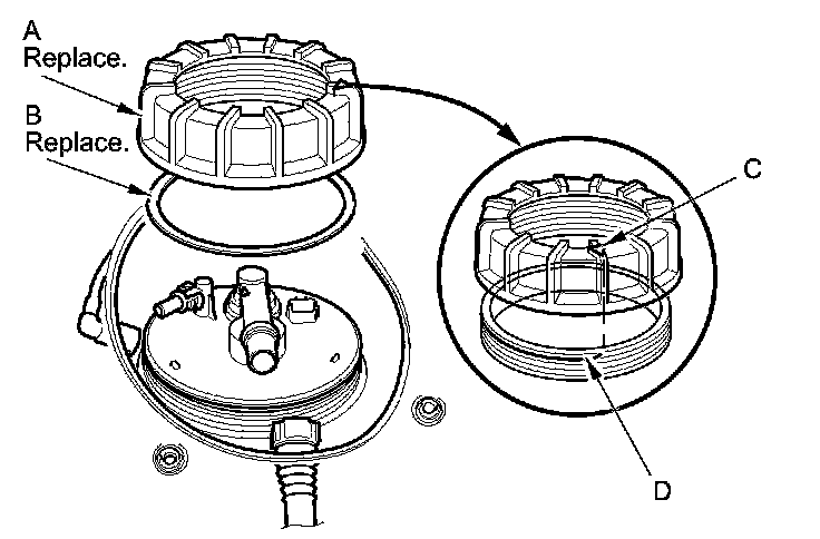 NOTE: To prevent a fuel leak, check the base gasket, visually or by hand, to make sure it is not pinched.
