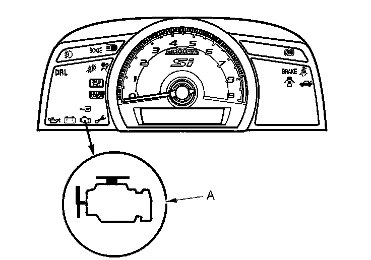 1. Start the engine, and check the MIL (A).