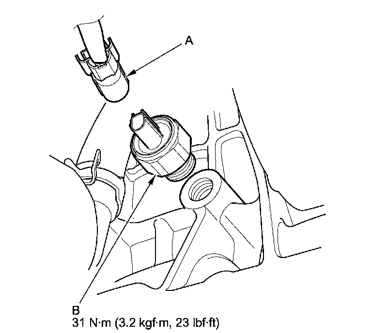 2. Remove the knock sensor (B).