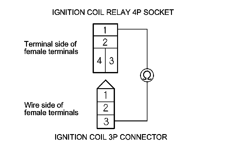 4. Check for continuity between ignition coil relay 4P socket terminal No. 1 and each ignition coil 3P connector terminal No. 3.