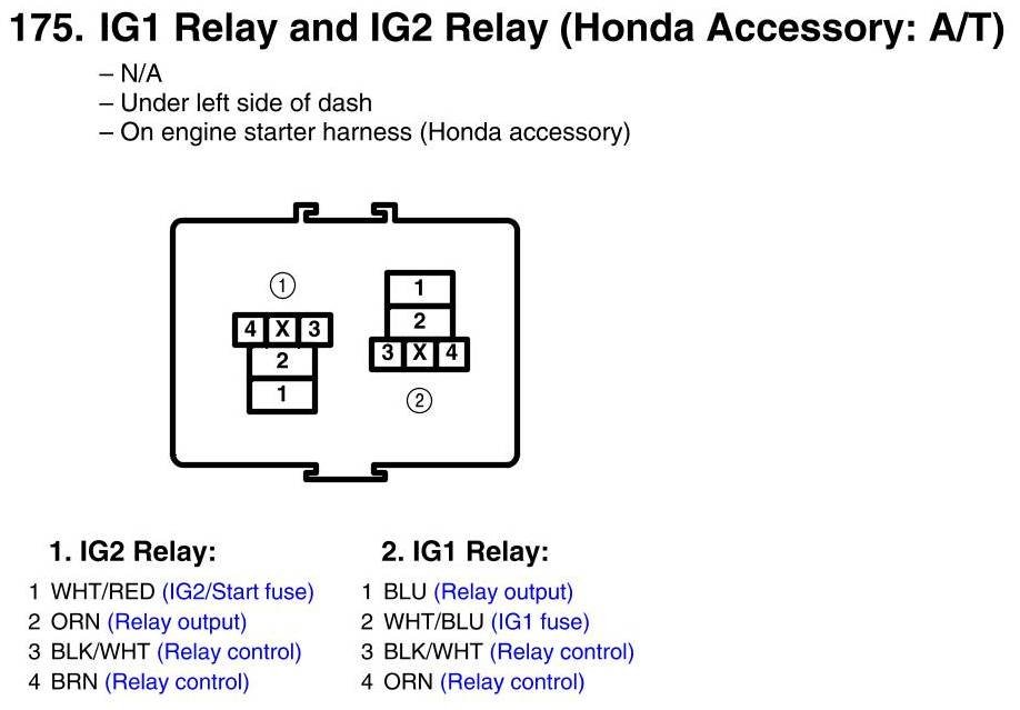 IG1 Relay And IG2 Relay Connector View (Honda Accessory: A/T)
