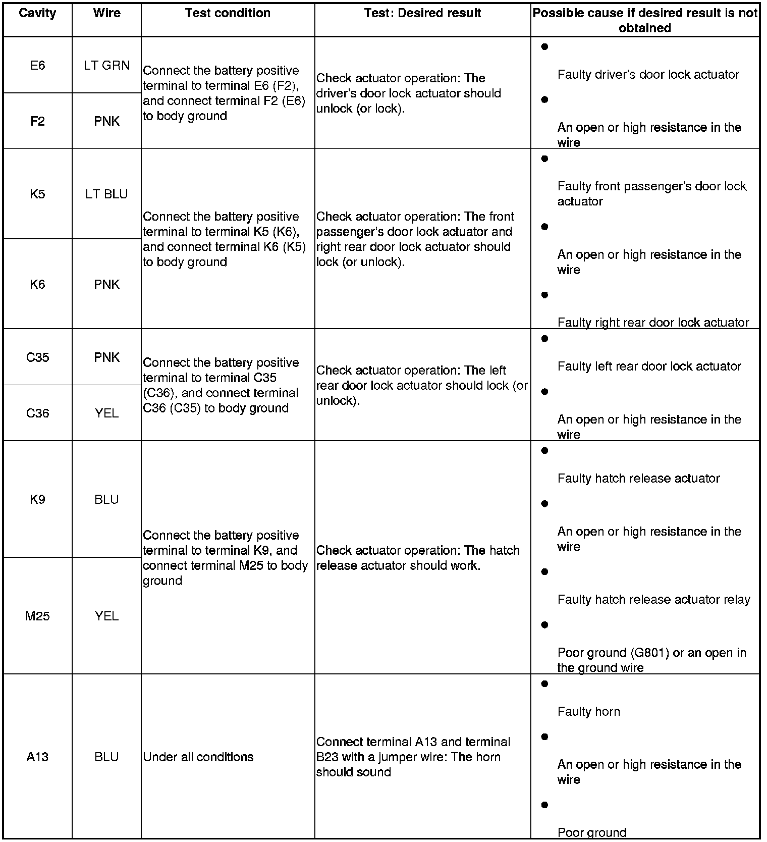 Keyless/Power Door Locks/Security System (MICU) Input Test