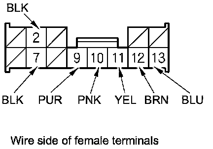 4. Record the power mirror connector terminals location and the wire harness colors.