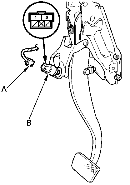 1. Disconnect the 4P connector (A) from the brake pedal position switch (B).