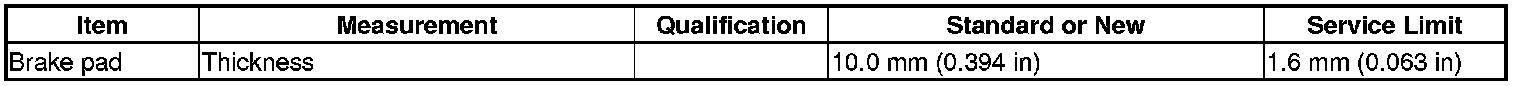 Brake Pad: Specifications