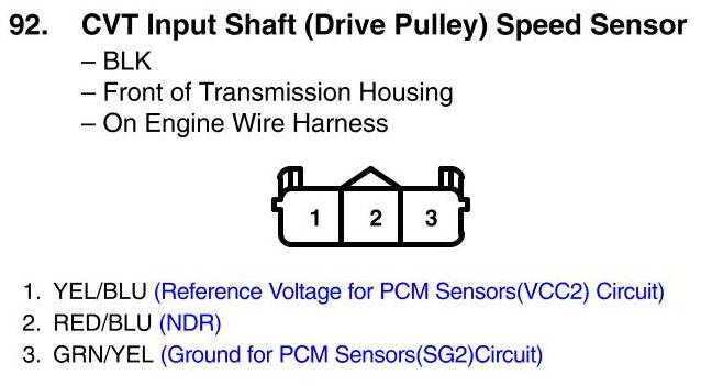 View 92 - CVT Input Shaft (Drive Pulley) Speed Sensor Connector View