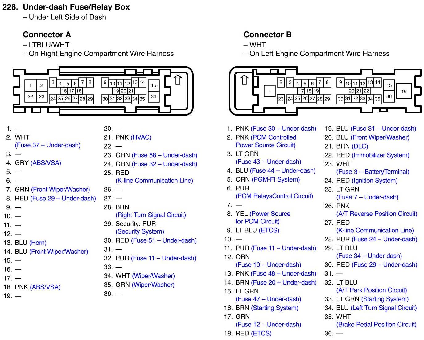 Under-Dash Fuse/Relay Box Connector View
