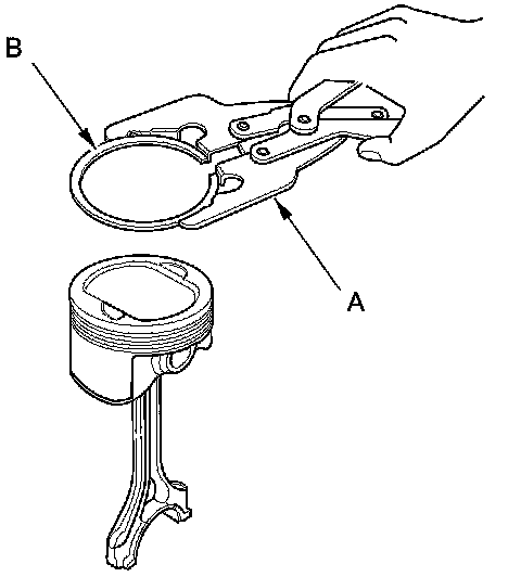 5. Measure the piston ring end-gap (B) with a feeler gauge: