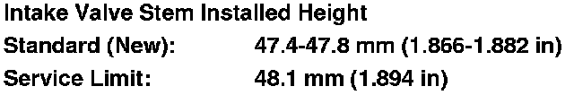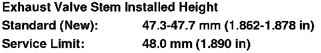 9. If valve stem installed height is over the service limit, replace the valve and recheck. If it is still over the service limit, replace the cylinder head; the valve seat in the head is too deep.