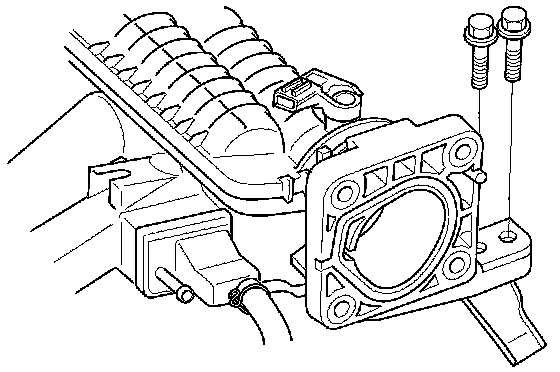 6. Remove the throttle body without disconnecting the water bypass hoses.