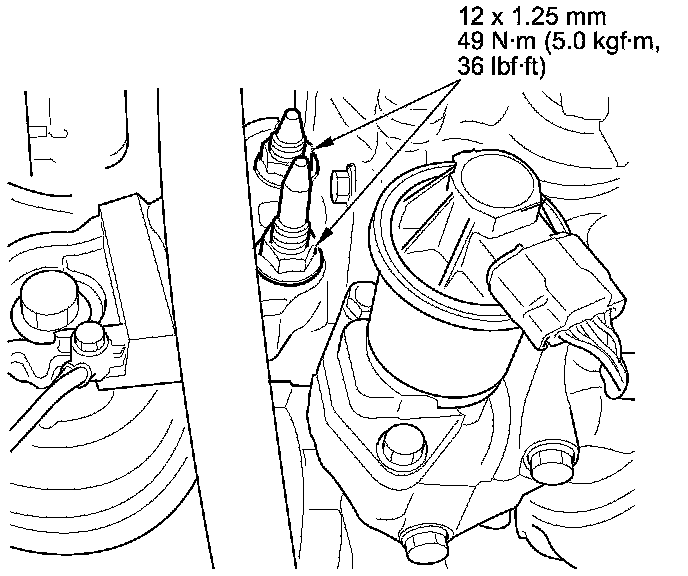 24. Tighten the torque rod mounting bolt and nut in the numbered sequence shown.