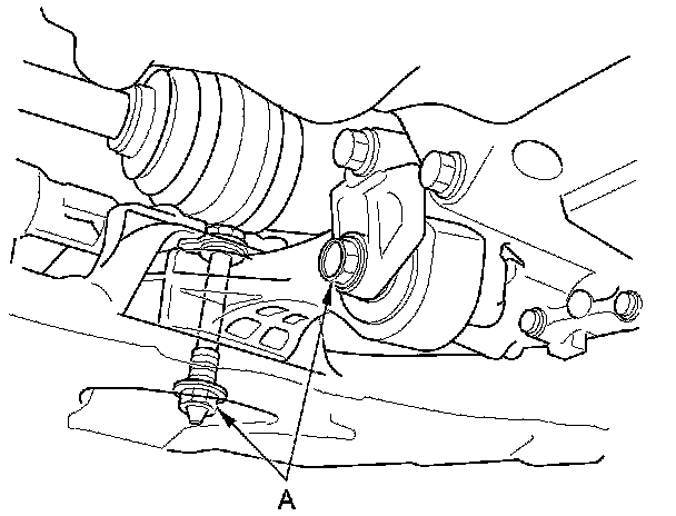 24. Loosen the torque rod mounting bolt and nut (A).