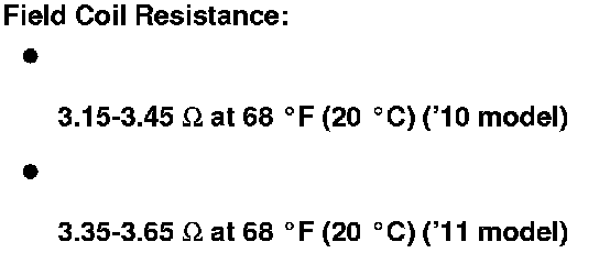 6. Disconnect the field coil connector (A). Check resistance of the field coil. If resistance is not within specifications, replace the field coil Service and Repair.