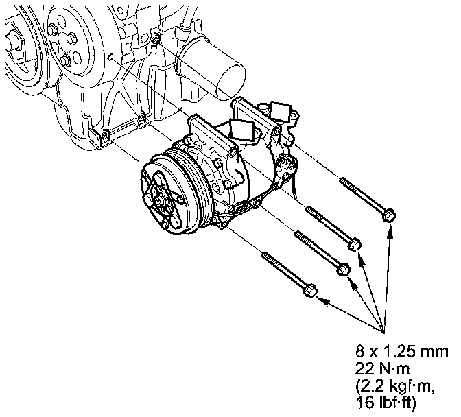 8. Install the compressor in the reverse order of removal, and note these items: