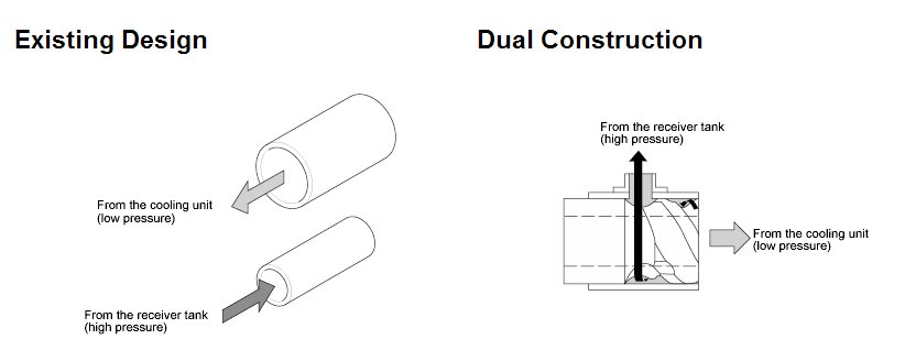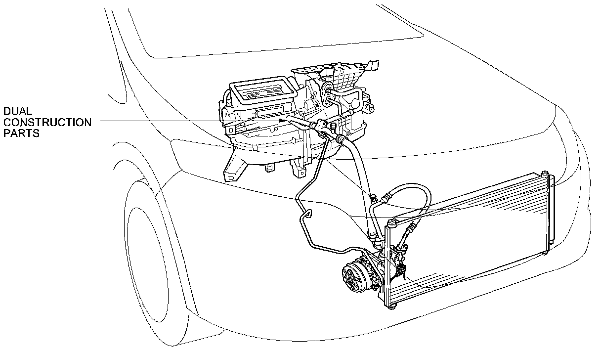 The A/C line unit installed between the engine compartment and the evaporator is the dual construction type.