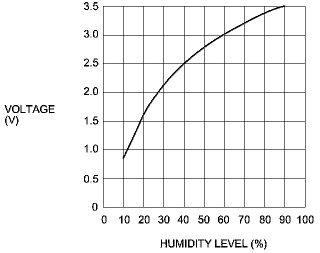 The capacitance of the humidity sensor changes by the adsorption and the evaporation of moisture. The resistance change of the humidity sensor changes the output voltage.