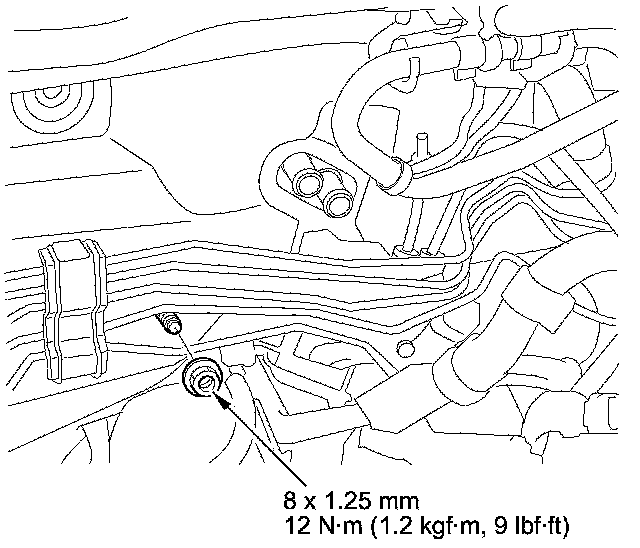 5. Remove the mounting nut from the heater unit. Take care not to damage or bend the fuel lines or the brake lines, etc.