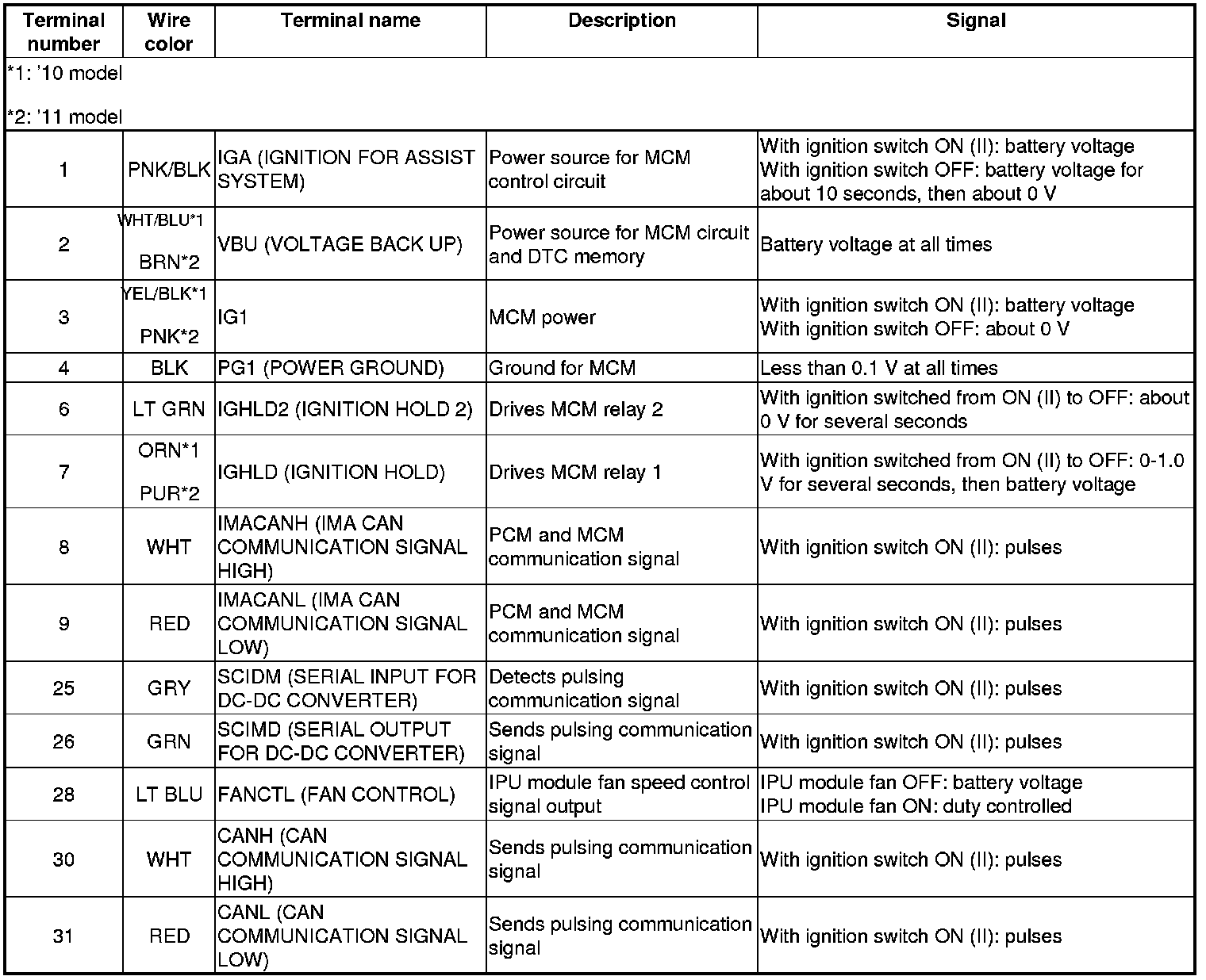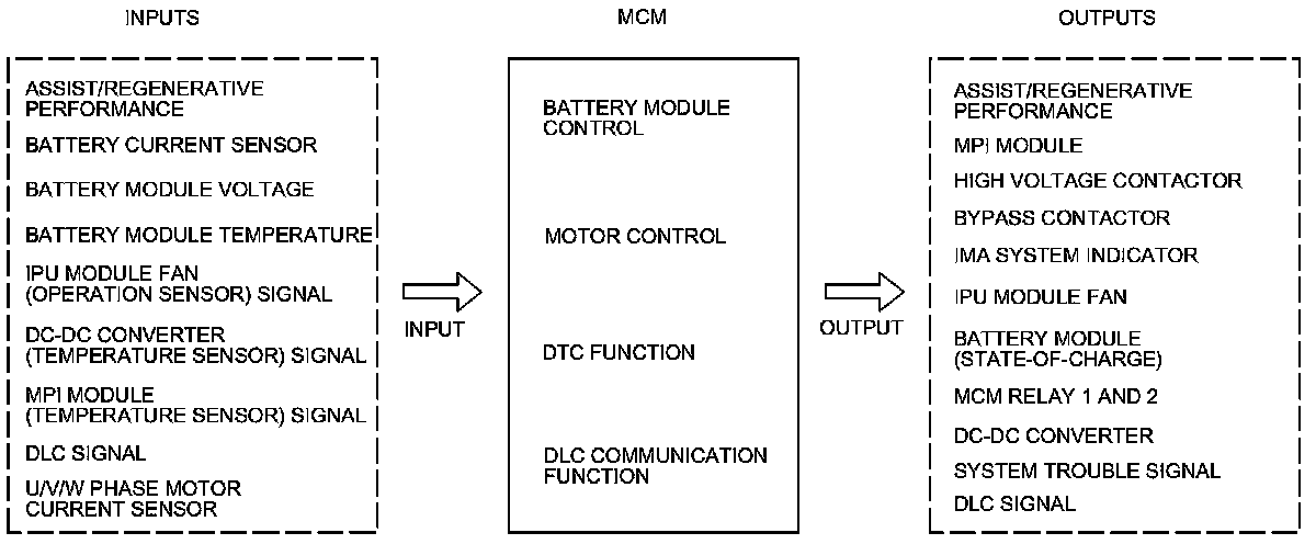 The MCM controls the IMA motor and monitors the condition of the battery module.