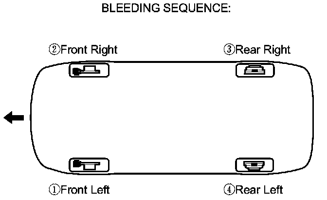 NOTE: Bleed the calipers or the wheel cylinders in the sequence shown.