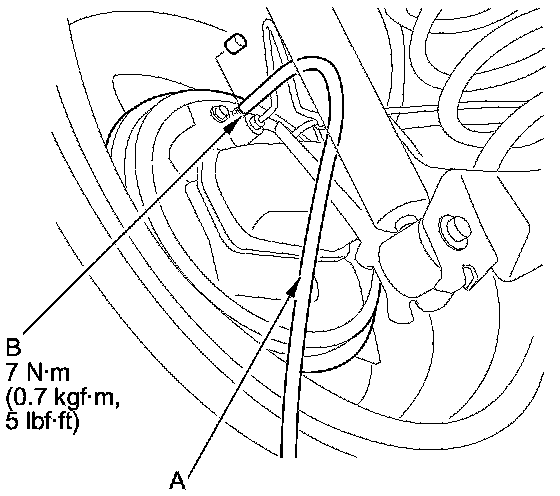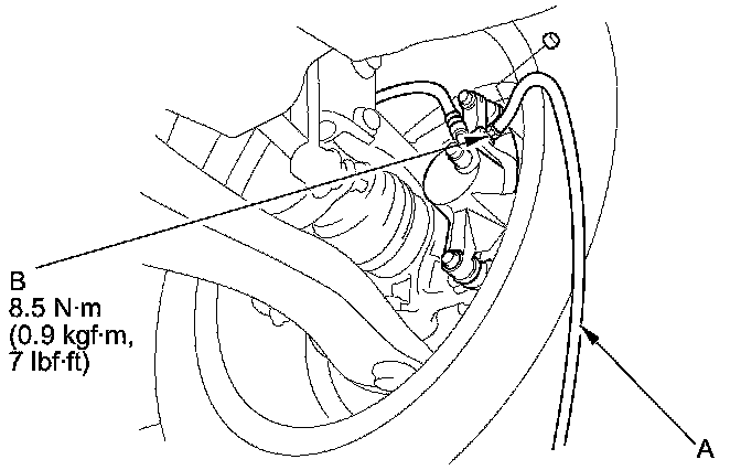 4. Attach a length of clear drain tube (A) to the bleed screw (B), then loosen the bleed screw to allow air to escape from the system. Then tighten the bleed screw securely.