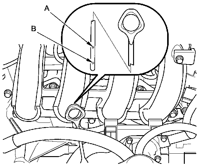 3. Remove the dipstick, and check the engine oil level. It should be between the upper mark (A) and lower mark (B).