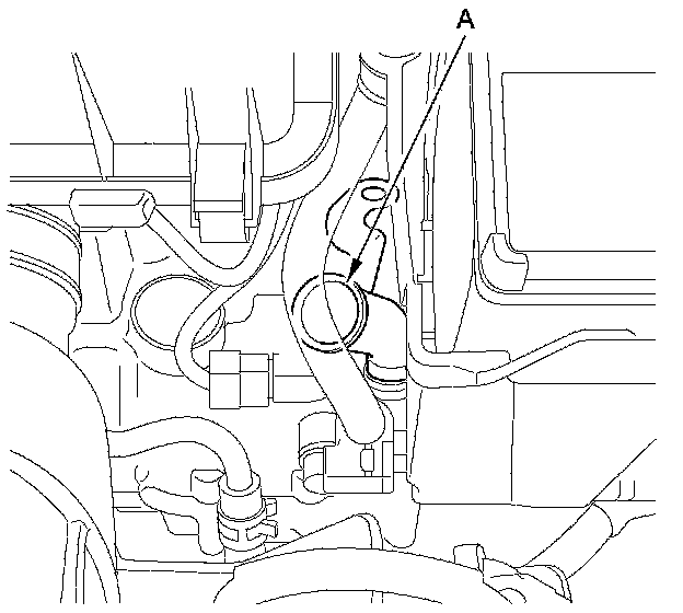 6. Refill the transmission with the recommended fluid through the dipstick tube opening (A) to bring it to the upper mark on the dipstick. Always use Honda CVT fluid (CVTF). Using a non-Honda CVTF can affect shift quality.