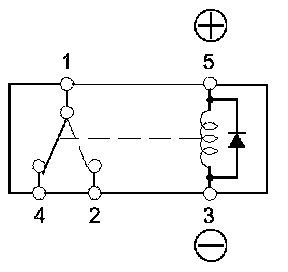- There should be continuity between terminals No. 1 and No. 2 when battery power is connected to terminal No. 5, and body ground is connected to terminal No. 3.