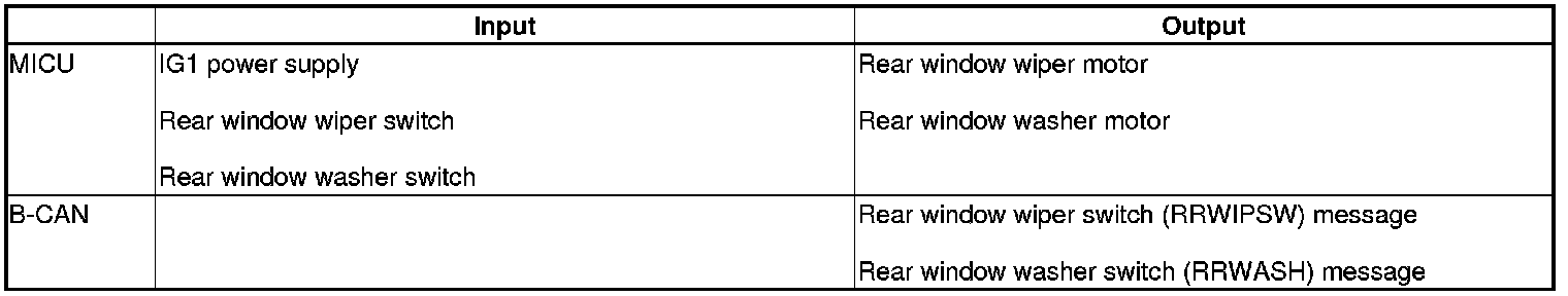 The MICU control of the rear window wiper motor and the rear window washer motor is based on inputs from each switch.