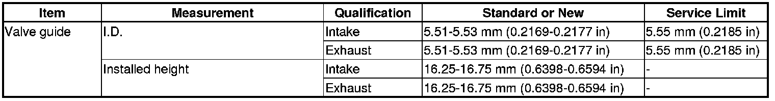 Valve Guide Specification(s)